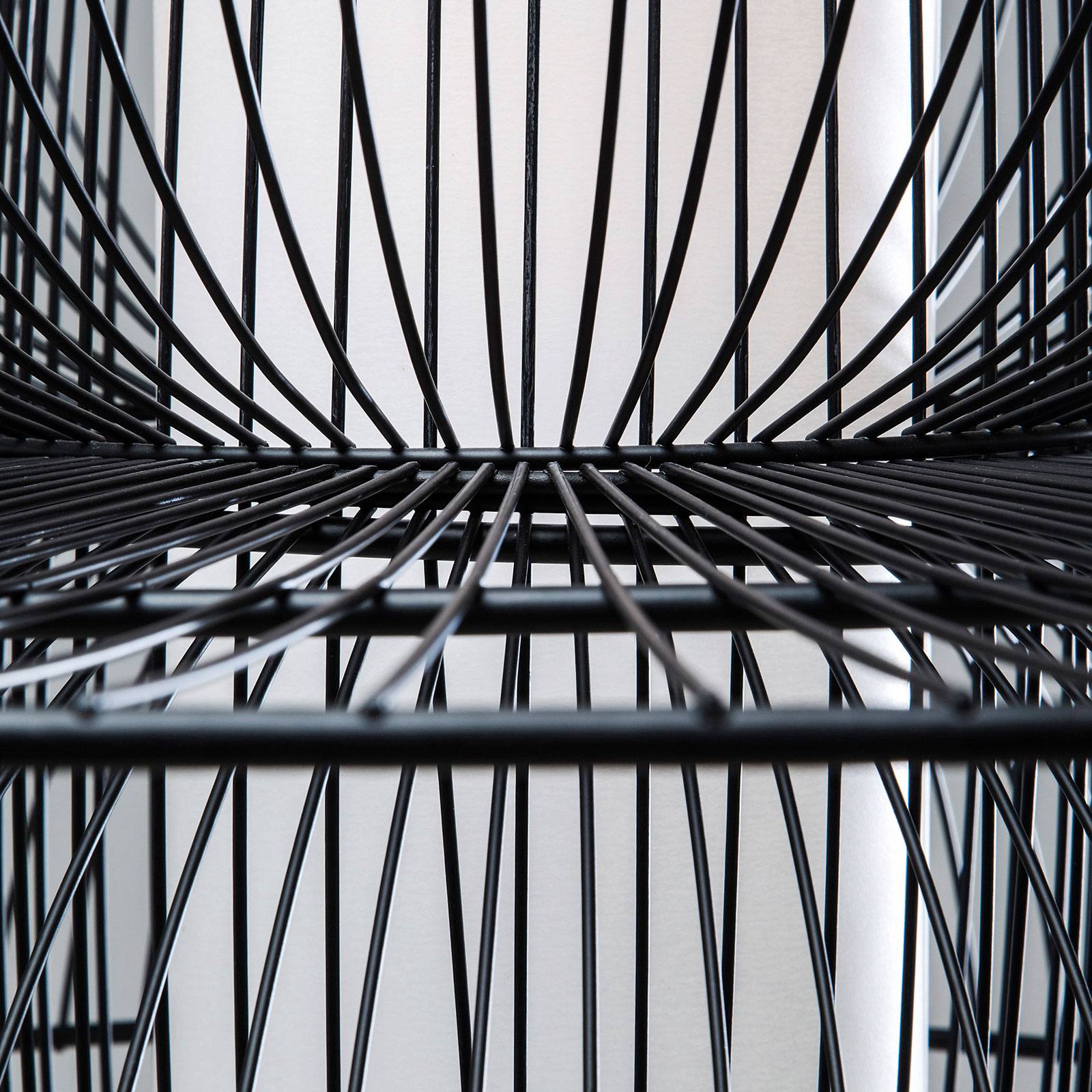 Lampada a sospensione Cappello Opposto con struttura a montante simmetrico L'apparecchio a sospensione Cappello Opposto è costituito da una cornice di montanti in acciaio laccato nero, costituita da due metà identiche il cui asse a specchio è l'equatore dell'apparecchio. Questo crea l'impressione di un corpo senza peso. Tuttavia, poiché il produttore KARE non può, naturalmente, superare le leggi della fisica, Cappello Opposto richiede anche un sistema di sospensione;