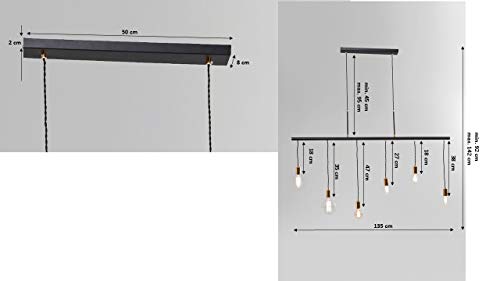 Cavo principale nero: 50 cm, sospensione: 50 L XB 8 x H 2 cm, altezza regolabile min. Altezza: 92 cm, max. Altezza: 142 cm, sospensione per lampade: 38 cm, 18 cm, 27 cm, 47 cm, 35 cm, 18, non regolabile in altezza