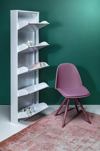 Kare Design scarpiera Caruso, bianco, 5 scomparti basculanti per max. 10 paia, comode dimensioni sottili, 170x50x14cm, corridoio, stanza da letto, stile minimalista, design e praticità