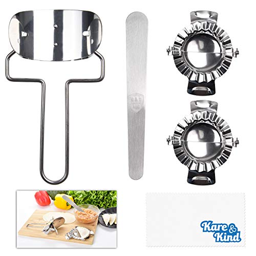 Kare & Kind 2x Stampi per Ravioli in Acciaio Inossidabile - Ottimo per Ravioli Cinesi, Ravioli - Crea Ravioli, Stampo Pressa Ravioli, Strumenti da Cucina - 1x Taglia Pasta, 1x Cucchiaio Incluso