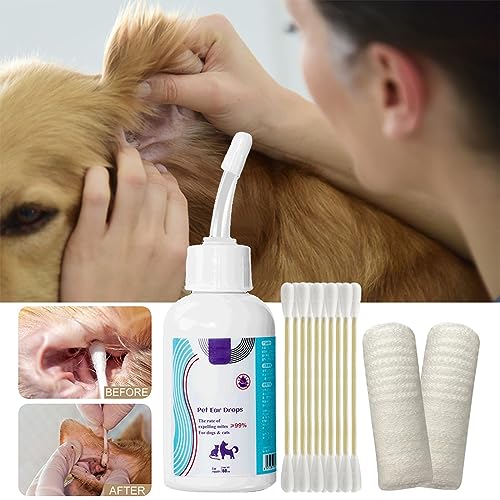 KARELLS 60ml Gocce per Acari dell Orecchio, Gocce D'acari, Pulisci Orecchie Cane e Gatto, Detergente per Orecchie per Cane, Dog Ear Cleaner, Petsly Pulizia Orecchie, Stop Prurito Rimuovere Earwax