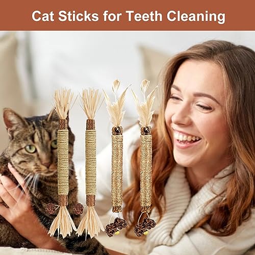 BASTONCINI ERBA GATTA PER GATTI: i bastoncini da masticare in legno di poligono per digrignare i denti sono giocattoli naturali per la cura dei denti dei gatti, i bastoncini da masticare aiutano a combattere il tartaro e l'alito cattivo.