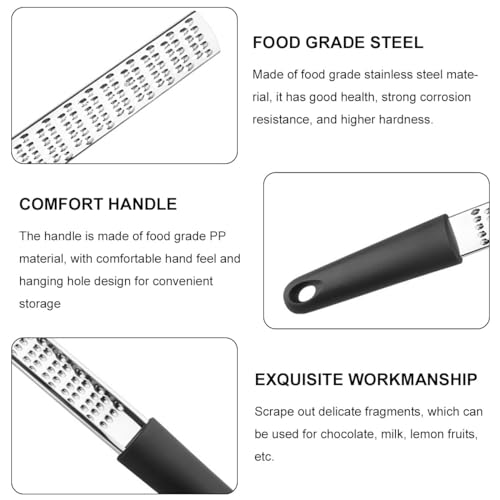 【Grattugia per formaggio】 Otterrai 1 grattugia per formaggio in acciaio inossidabile 430 alimentare nera circa 31,8 * 2,6 * 0.6cm, 1 paio di maniche grigie 5,2 * 2.8cm, la grattugia per formaggio ha una lama in acciaio inossidabile super affilata, progettata per prevenire l'intasamento e produrre rifiuti minimi durante la manipolazione di cibi duri o morbidi.