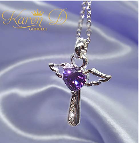 Karen D gioielli collana e ciondolo argento sterling 925 nickel tested angelo custode zircone cubico color collection idea regalo donna ragazza nascita (Purple)