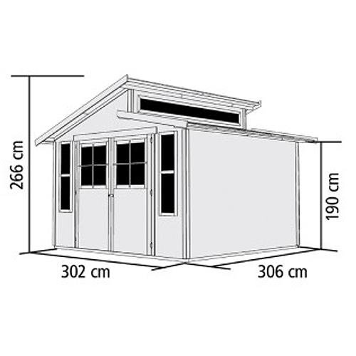 Grazie all'aspetto moderno con il tetto a gradini, la casetta diventa un'attrazione nel vostro giardino.