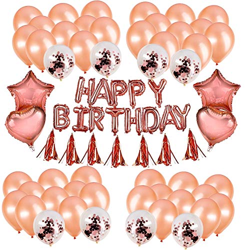 Karids 40 Palloncini Compleanno in Lattice Color Oro Rosa | 15 Palloncini con Coriandoli + Palloncini Lettere Buon Compleanno + 2 Palloncini a Cuore e a Stella + 10 Fiocchi Rose Gold + Pompa a Mano