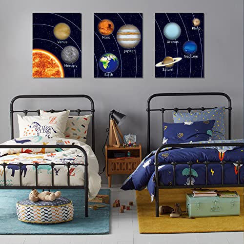 KARINE Set di 3 Poster per Camera Bambini con Cornice,Sistema Solare Stampe Parete per Stanzadel Ragazzo,Pianeta Poster e Stampe Decorative per Camera da Letto Asilo Nido,30×40Cm,Cornice di Legno
