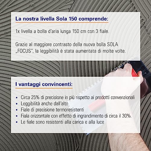 MIGLIORE LEGGIBILITÀ: La leggibilità della livella a bolla SOLA "FOCUS" è stata notevolmente aumentata grazie a un maggior contrasto. Inoltre, adesso la livella a bolla è resistente alla corrente e alla luce