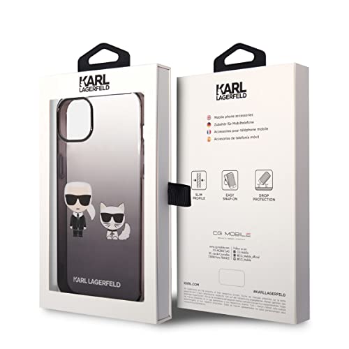 KARL LAGERFELD Gradient Ikonik Karl & Choupette - Custodia per iPhone 14 Plus (Nero)