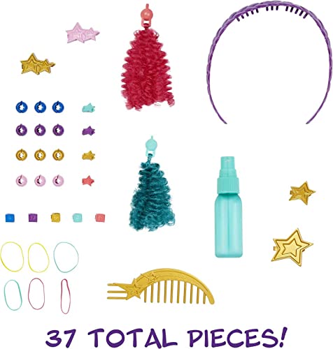 Spazzola, treccia, torcere e accessoriare con clip, ciondoli, una fascia, extension per capelli, elastici e altro ancora.