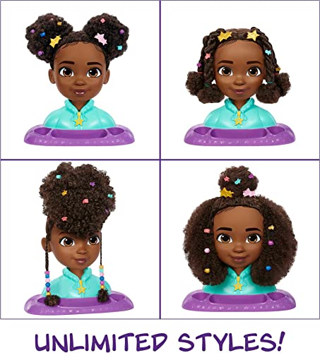 Realizzato con capelli da bambola premium, questa testa per lo styling della bambola Karma (30,5 cm) ha riccioli altrettanto impavidi e belli come i suoi nello spettacolo.