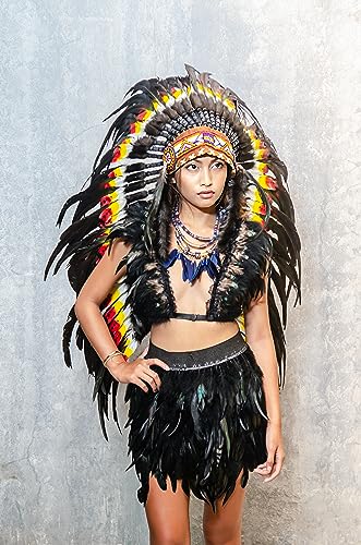 KARMABCN Native American Inspired Medium Feather Headdress (36 inch Long)/War Bonnet