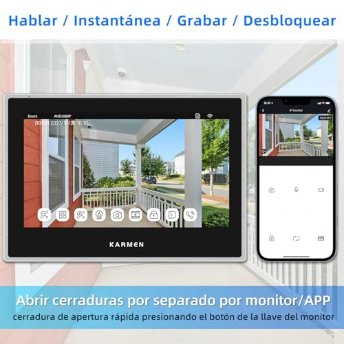 Karmen wifi citofono con telecamera,kit videocitofono smart,dispositivi con alexa,Touch screen da 7 pollici, campanello cablato con fotocamera, funziona con l'app tuya, rilevamento del movimento