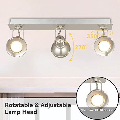 KARMIQI Faretto da soffitto 3 Punti Luce, Faretto Led da Soffitto Orientabili, Lampada da Parete Finitura in Brushed Nickel, incl.3 x 4W GU10