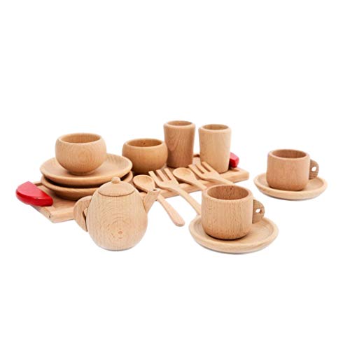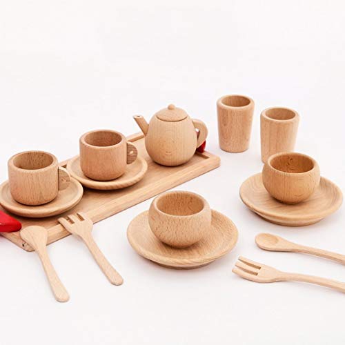 Karrychen 1 Set Utensili da tavola in Legno Teiera Tazza da tè Teatime Party Gioca Giocattolo Casa delle Bambole Cucina in Miniatura Stoviglie Accessori per Giocattoli per Bambini