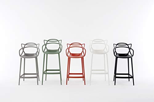 Kartell Masters Stool Sgabello, Tecnopolimero termoplastico Riciclato con Carica Minerale e Trattamento Soft-Touch, Verde(Salvia), H. 65