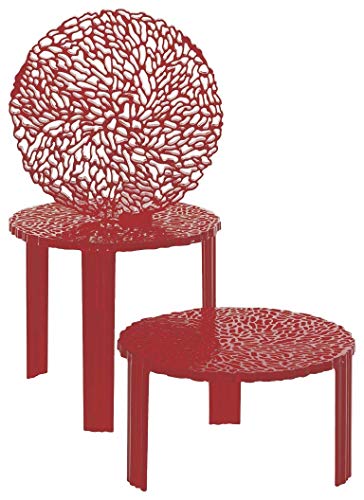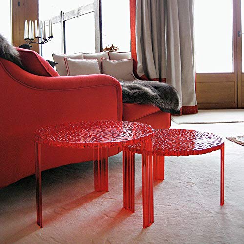 Kartell T-Table Tavolino, PMMA Trasparente o colorato in Massa, Rosso, 50 x 50 x 44 cm