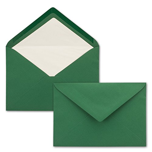 Karten und Co. - 50 buste per lettere, formato C5, foderate con carta velina bianca, 110 g/m², 22,9 x 15,5 cm, con chiusura a umido, colore: Verde scuro