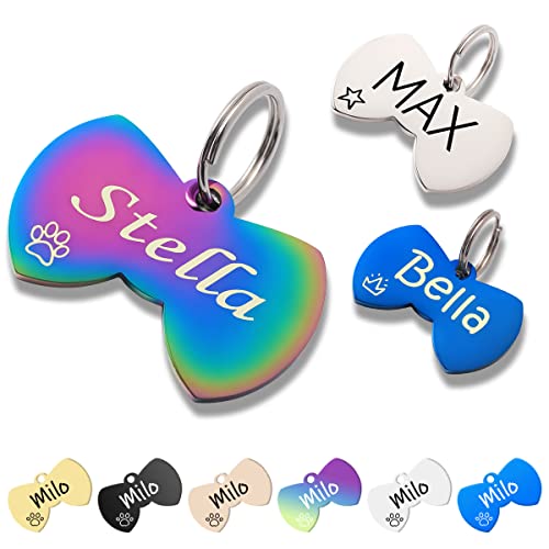 KARTPIX Targhette identificative personalizzate per cani Gatti per animali Nome del collare Prodotti incisi personalizzati (Cravatta a farfalla)