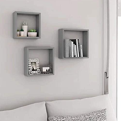 Kasahome Set 3 Mensole da Muro Parete in Legno MDF a Forma di Cubo di Colore Noce Bianco e Olmo Arredamento Arredo Cubi Pensili Ufficio 25 cm (olmo)