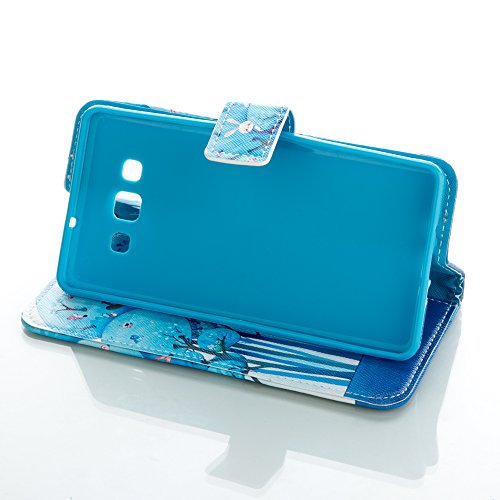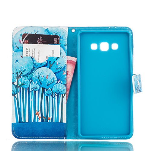 KaseHom Compatible PU Pelle Portafoglio Custodia Stile del Libro Foglio Protezione Capovolgere Caso Astuccio Pelle Case-Blu Foresta Volpe Coniglio