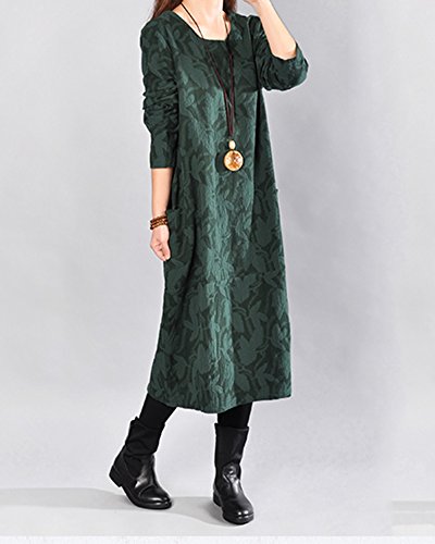 Kasen Donna Vestito Rotondo Collare Manica Lunga Vestito Sciolto Verde Scuro XL