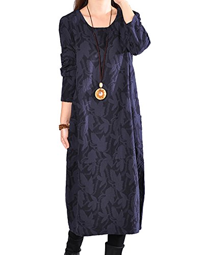 Kasen Donna Vestito Rotondo Collare Manica Lunga Vestito Sciolto Marina L