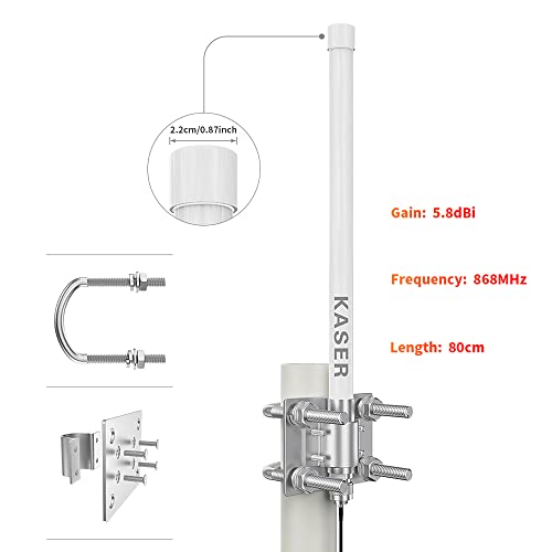 KASER Antenna LoRa 868 MHz Omnidirezionale Antenna LoRaWAN Esterna in Fibra di Vetro compatibile per Hotspot RAK HNT Bobcat Helium Miner, Cavo Prolunga da 3 Metri T200 connettore N-SMA - 80CM 5.8dBi