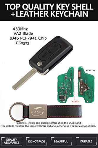 KASER Chiave Telecomando con Scheda Elettronica 2 Tasti per Peugeot 307 207 Citroen C1 C2 C3 (433MHz ID46 PCF7941 Chip) con Transponder (CE0523)