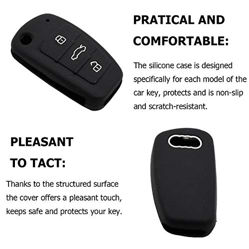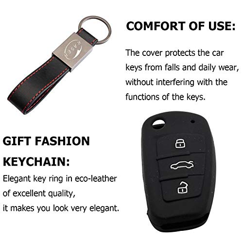 KASER Cover Guscio Chiave Silicone per Audi A1 A3 S3 A4 S4 A5 S5 A6 A7 Q3 Q5 Q7 TT 3 Tasti Portachiavi Custodia Morbido Protezione Telecomando Auto (Nero)