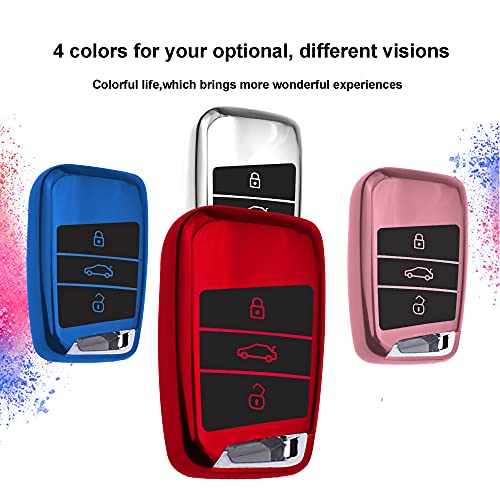 KASER Cover Guscio Chiave Silicone compatibile per VW Volkswagen Custodia in TPU adatto per VW Golf MK7 Seat Ibiza Leon Skoda Octavia Protezione Telecomando con Portachiavi (Rosso)