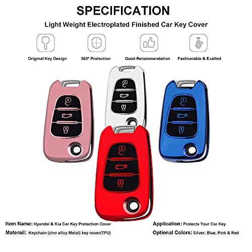 KASER Cover Guscio Chiave Silicone compatibile per Kia Hyundai Custodia in TPU adatto per Sportage Rio Ceed Picanto Optima iX35 i30 Tucson Protezione Telecomando con Portachiavi (Blu)