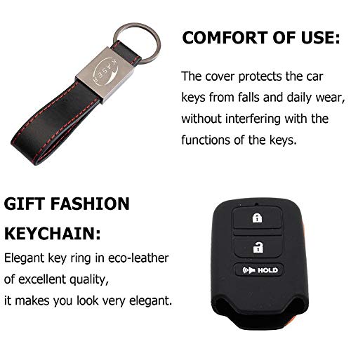 KASER Cover Guscio Chiave Silicone per Honda Accord CR-V Crider Civic HRV 3 Tasti Portachiavi Custodia Morbido Protezione Telecomando Auto (Nero/Solo Keyless Go)