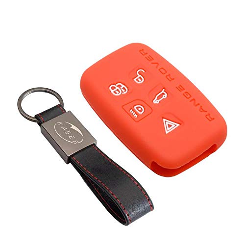 KASER Cover Guscio Chiave Silicone per Land Rover Discovery 4 LR4 Range Rover Sport Evoque Jaguar XE XF XJ F-Pace F-Type 5 Tasti Portachiavi Custodia Morbido (Rosso/Solo Keyless Go)