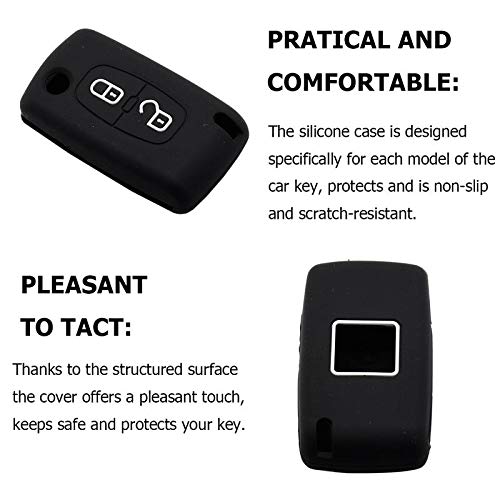 KASER Cover Guscio Chiave Silicone per Peugeot 207 307 407 308 Citroen C1 C2 C3 C4 2 Tasti Portachiavi Custodia Morbido Protezione Telecomando Auto (Nero)