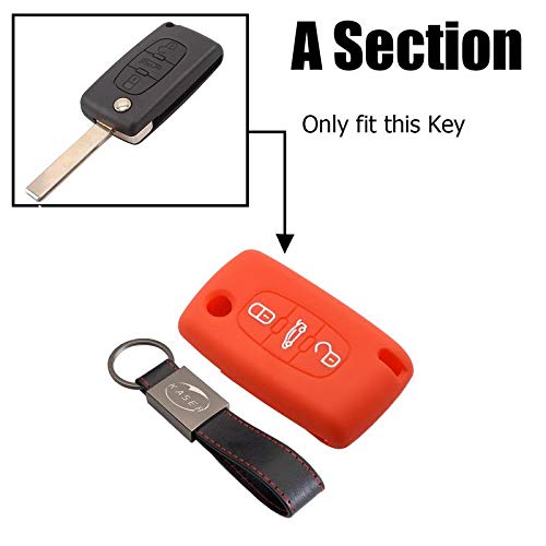 KASER Cover Guscio Chiave Silicone per Peugeot 207 307 407 308 Citroen C1 C2 C3 C4 3 Tasti Portachiavi Custodia Morbido Protezione Telecomando Auto (Arancione)