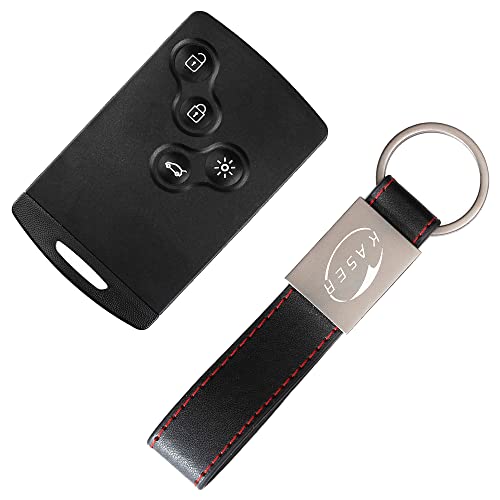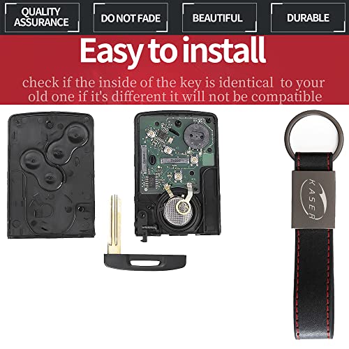 KASER Cover Guscio Chiave Telecomando compatibile per Renault Megane Koleos Scenic Clio Laguna Scocca a 4 Tasti Keyless con Portachiavi in Pelle