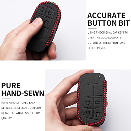 Kaser Cover Guscio Custodia in Pelle con Portachiavi per Chiave Jeep Cherokee Grand Cherokee Renegade Chrysler Lancia 4 Tasti Protezione Telecomando Auto (solo Keyless GO)