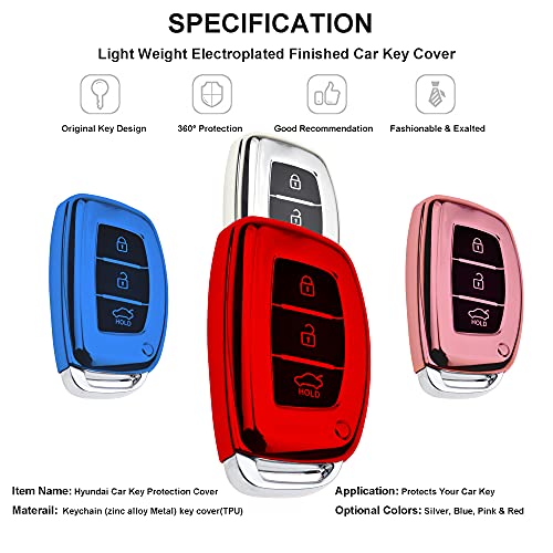 KASER Cover Guscio Silicone per Chiave Hyundai - Custodia in TPU Morbida Cromata per Telecomando Keyless Hyundai Kona i10 i30 ioniq Tucson Santa Fe Protezione con Portachiavi (Rosa)