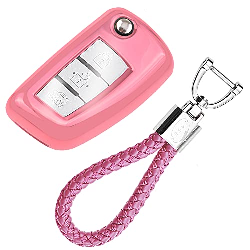 KASER Cover Guscio Silicone per Chiave Nissan - Custodia in TPU Morbida Cromata per Telecomando 2/3 Tasti Nissan Qashqai Juke X-Trail Micra Murano Protezione con Portachiavi (Rosa)