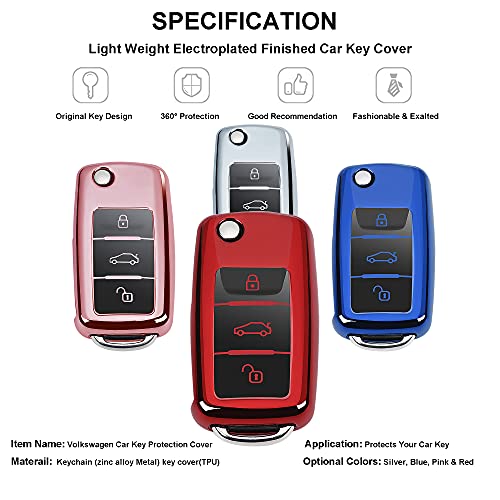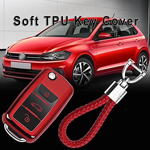 KASER Cover Guscio Silicone per Chiave Volkswagen VW - Custodia in TPU Morbida Cromata per Telecomando VW Golf Seat Ibiza Leon Skoda Octavia Protezione con Portachiavi (Rosso)