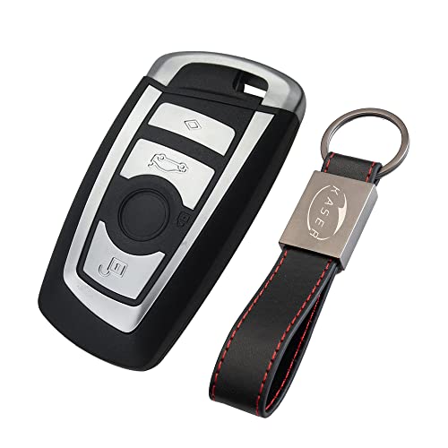 KASER Guscio Chiave per BMW - Cover Scocca 4 Tasti per Telecomando BMW Serie 1 2 3 5 6 X3 X5 E90 E91 E92 E60 Keyless con Portachiavi in Pelle