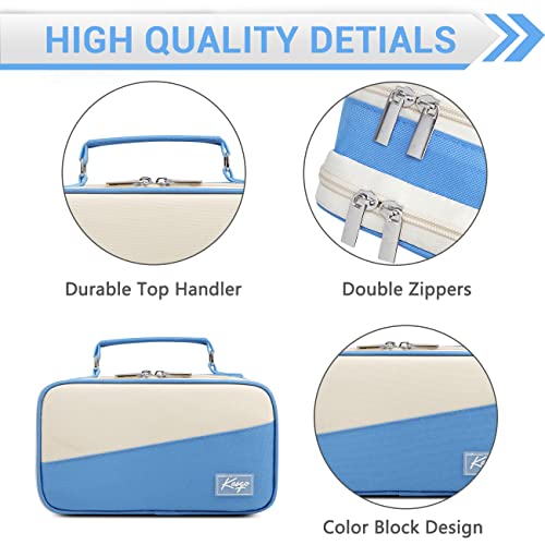 Kasgo Astuccio Grande, Matite Astuccio Scuola Borsa Matita Case Penne Holder con 2 scomparti Grande Capacità Matite Colorate Organizzatore Sacchetto per Scuola Lavoro Arte, Blu e Beige