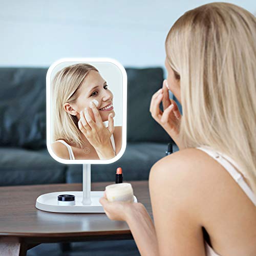 Kasimir Specchio da Trucco con Luce LED Specchio Cosmetico Illuminato Portatile Specchio Makeup Professionale Touch Screen per Trucco Camera da Letto Rasatura e Viaggio - Bianco