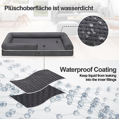 Kasunpul Cuccia ortopedica per cani, divano per cani, cuscino per cani, con bordi rialzati, base antiscivolo, lavabile, 91 x 71 x 25 cm, grigio scuro