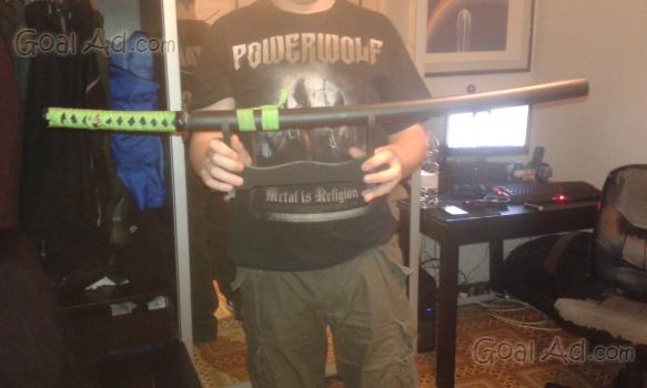 Con rialzo da esposizione, di grande effetto scenico. Usata sia per adornare vari Cosplay interpretati sia per arredare la mia camera. Comprata al romics dell'anno scorso a 45 euro, vendo a 30 euro per problemi di spazio. Regolarmente spolverata e lucidata.