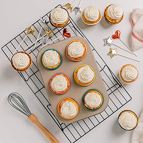 Non c'è bisogno di una padella!- Lo spessore della carta di questo materiale da forno è di 80 g/mq, mentre le fodere per muffin comuni utilizzano carta da 40 g/mq. Gli stampini per muffin sono abbastanza spessi da poter essere usati da soli senza teglia.