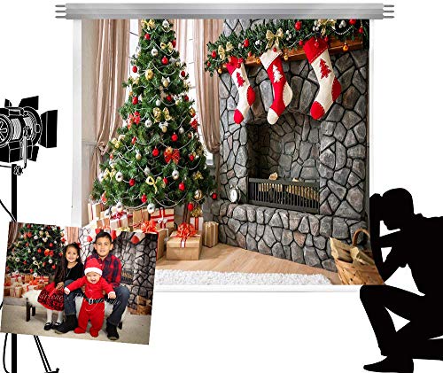 Kate albero di Natale su sfondo camino Photocall fondale per studio fotografia foto di famiglia di Natale 3 x 2 m