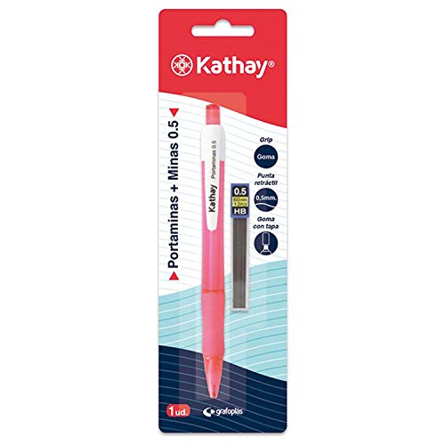 Kathay 86210899 Portamine con gomma e punta retrattile, punta 0,5 mm + scatola di mine di ricambio, colori casuali
