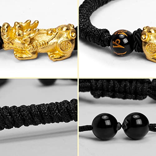 Katomi - Corda intrecciata a mano Braccialetto cinese con perline Feng Shui, colore nero, con Pi Xiu, in ossidiana, con amuleto intagliato a mano, per fortuna e ricchezza (Corda nera piccola, 20cm)